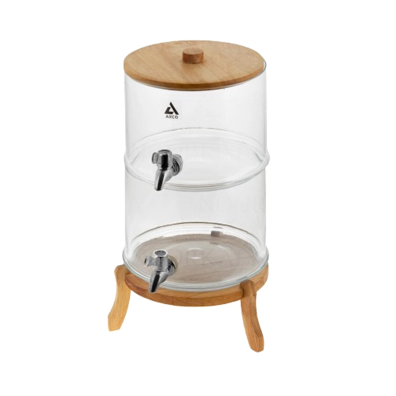 کلمن شیشهای پایه بامبو Arco با ظرفیت ۸ لیتر، بدنه بلور شفاف و پایه چوب راش، انتخابی شیک و مناسب برای مهمانیهاست. طراحی دوطبقه، شیر باکیفیت و ارتفاع مناسب، آن را برای سرو انواع نوشیدنی در مراسم مختلف ایدهآل کرده است.
