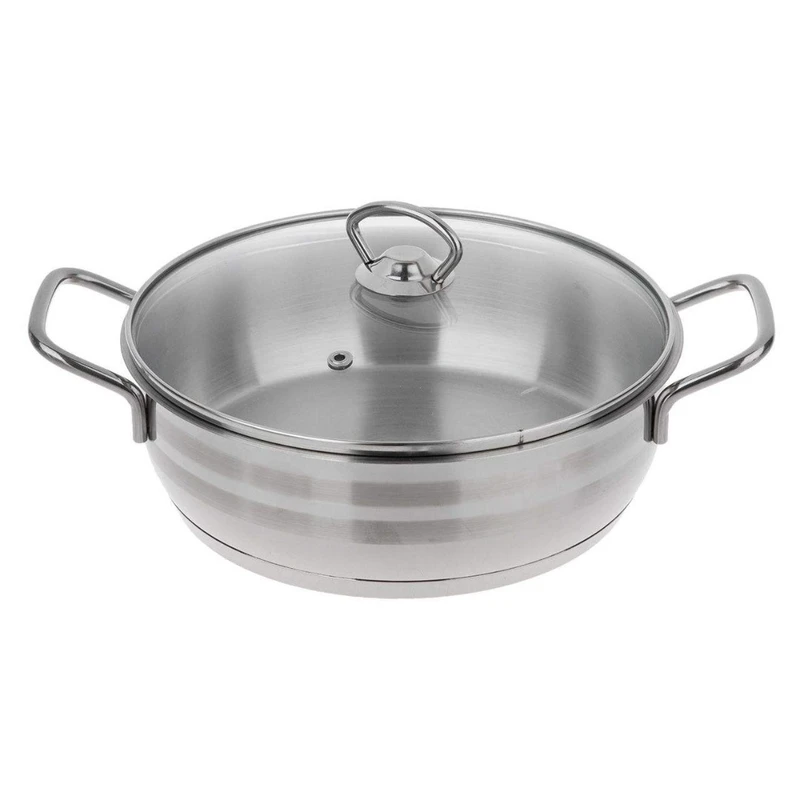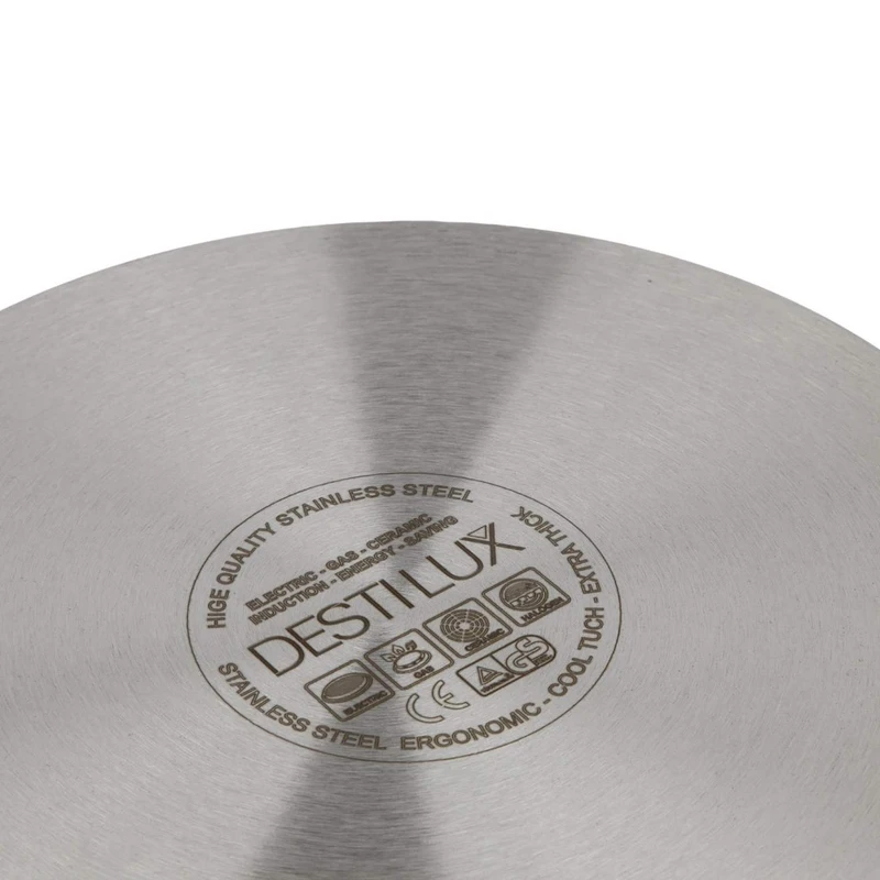 تابه استیل دستی لوکس DESTILUX سایز 24 با بدنه و دسته تمام استیل، مقاوم، شیک و کاربردی برای پخت انواع غذا.