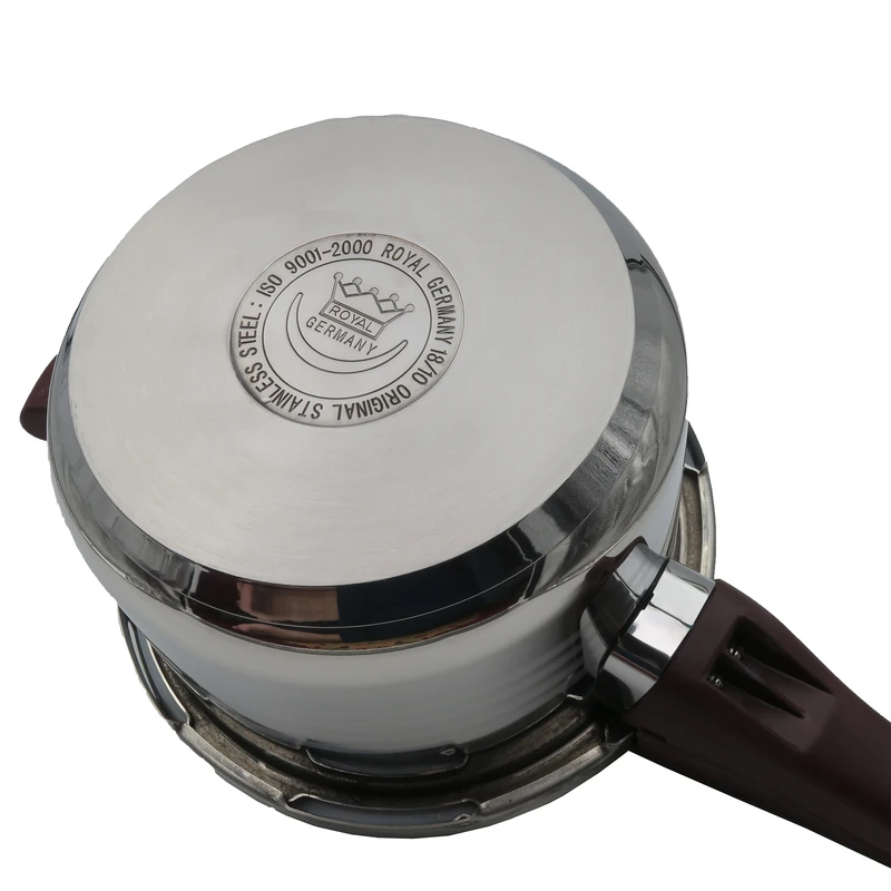 زودپز رویال Safe Guard با ظرفیت ۶ لیتر و جنس بدنه و درِ استیل ضدزنگ، پخت سریع و ایمن را فراهم میکند. طراحی دودسته عایق، کیفیت آلمانی و دوام بالا، آن را به انتخابی ایدهآل برای آشپزی روزمره تبدیل کرده است.