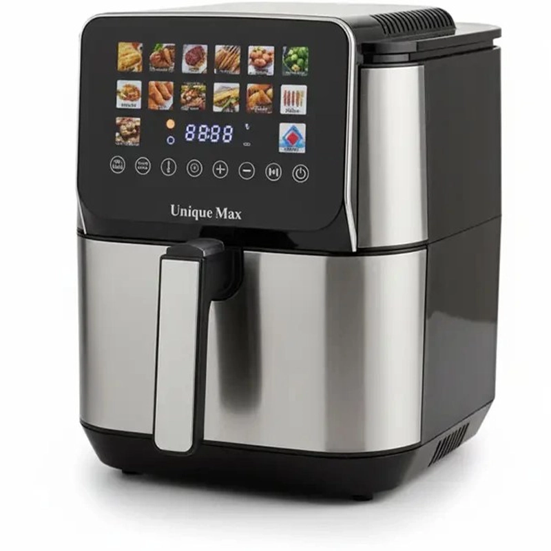 سرخ کن بدون روغن یونیک مکس مدل UM-8601 با ظرفیت بزرگ 12 لیتری، المنت حرارتی دوگانه و صفحه نمایش دیجیتال لمسی، امکان پخت یکنواخت و سریع انواع غذا را بدون نیاز به روغن فراهم میکند و گزینهای عالی برای خانوادههای پرجمعیت و مهمانیهاست.