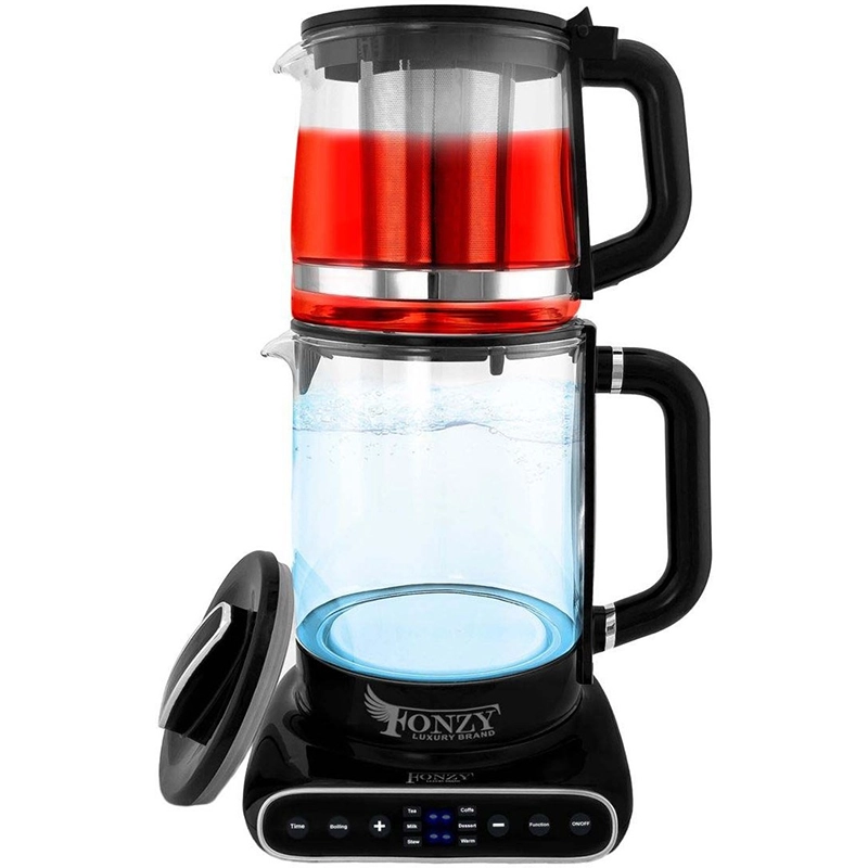 چایساز استیل تاچ فونزی مدل 102 با طراحی مدرن، نمایشگر لمسی، توان 1500 وات و سیستم گرمنگهدار، انتخابی عالی برای تهیه چای روزانه است. کتری 1.5 لیتری و قوری شیشهای آن استفاده را راحت و سریع میکند و برای خانه و محیط کار کاملاً مناسب است.
