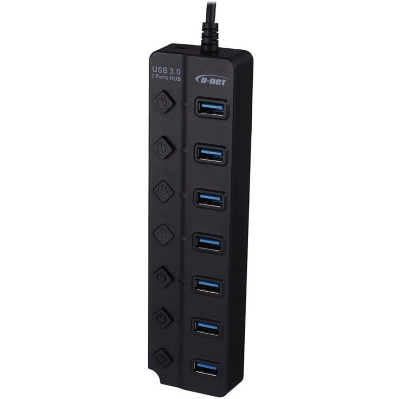 هاب دی نت DT-480 با 7 پورت USB 3.0، کلید روشن/خاموش و نشانگر LED، سرعت انتقال 5GBPS و کابل 1.2 متر، اتصال مطمئن و سریع چند دستگاه به کامپیوتر را فراهم میکند.