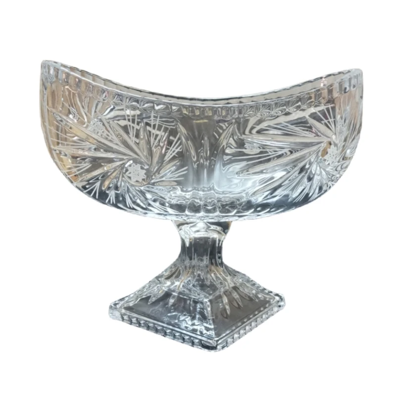 کشکول پایه‌دار بزرگ کریستال مدل خورشیدی، مناسب میوه و آجیل، ساخت چین، با طراحی شیک و کیفیت بالا برای پذیرایی کنار مبلی و روی میز.