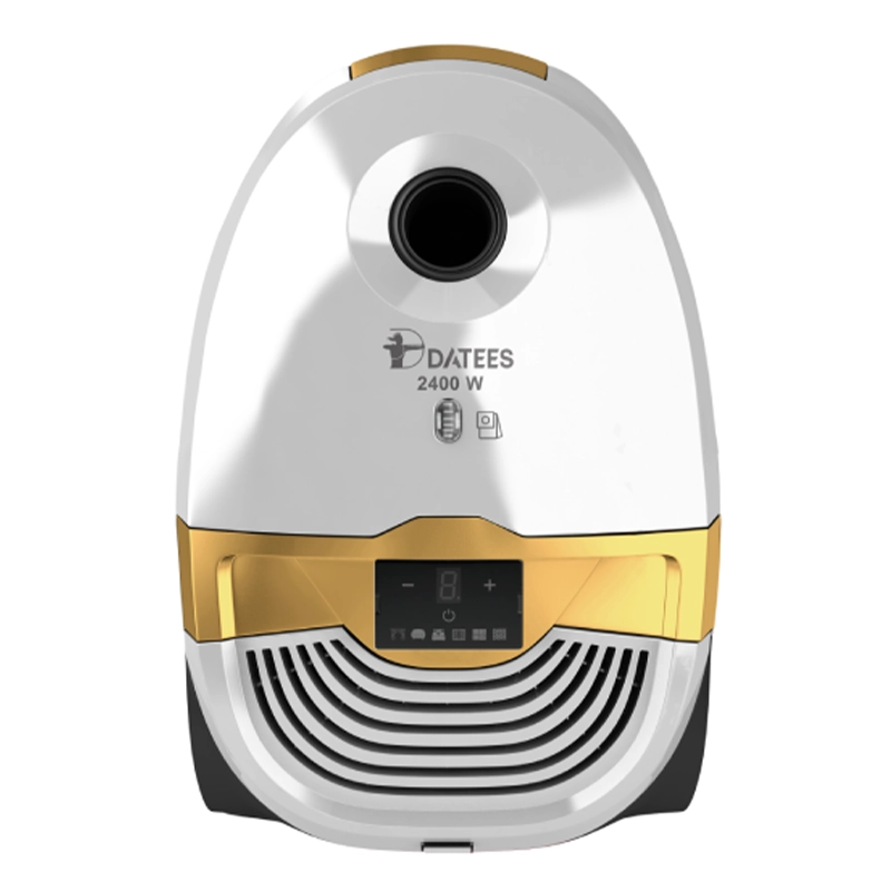 جاروبرقی داتیس مدل DVC709 با قدرت مکش ۲۴۰۰ وات و ظرفیت کیسه ۵.۵ لیتر، مجهز به فیلتر HEPA، شلنگ انعطافپذیر با روکش کنفی، سیم جمعکن اتوماتیک و قابلیت تنظیم مکش در ۶ سرعت. دارای پارویی گوشهگیر و پارویی مبلمان برای نظافت آسان و کامل.