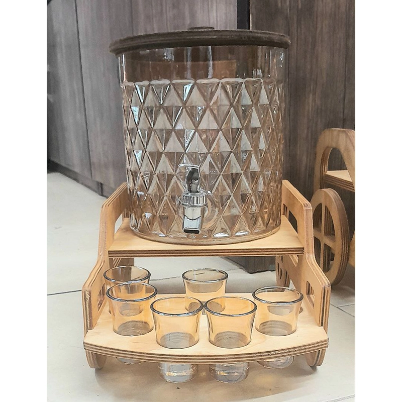 کلمن شربت خوری کالسکه ای 4 لیتری همراه با 6 عدد شات، مناسب برای پذیرایی شیک و خاص در مهمانیها و مجالس.