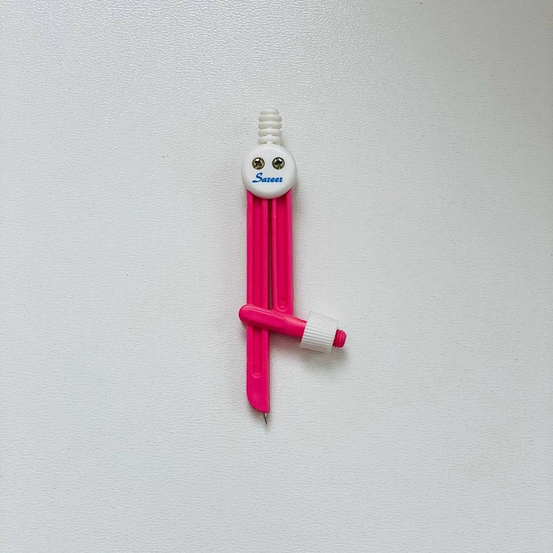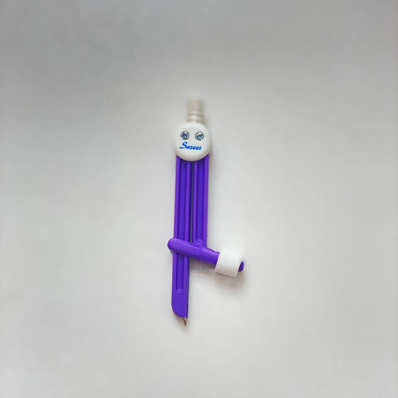 پرگار رنگی پلاستیکی با رنگهای متنوع و پیچ نگهدارنده مداد، مناسب تمرین هندسه و دایرهکشی برای دانشآموزان.