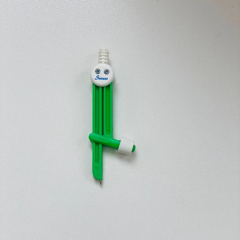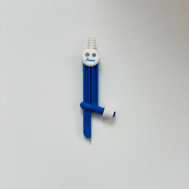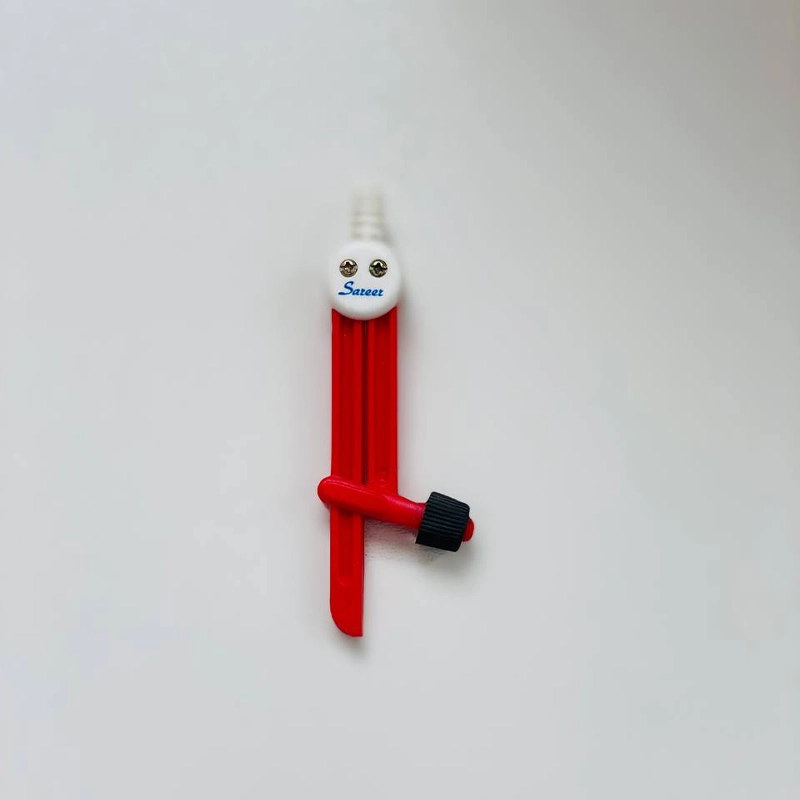 یه قطعه پلاستیکی کوچک هم روی یکی از دستهها قرار گرفته که باهاش میتونی مداد رو محکم نگهداری تا حین رسم لق نزنه یا نچرخه. اگه داخل این پیچ رو نگاه کنی و کمی آروم بچرخونی، متوجه میشی چطوری کمک میکنه مداد سر جای خودش بمونه.