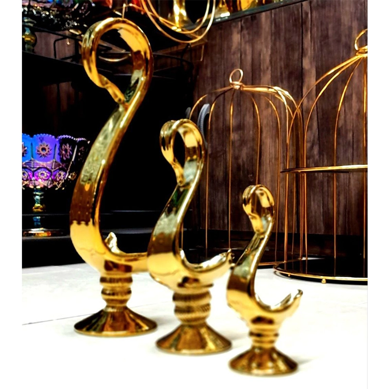 قو پایه دار آبکاری شده سرامیک سه تکه با رنگ طلایی ثابت و قابل شستشو، انتخابی لوکس برای جلوهای خاص در دکوراسیون منزل.