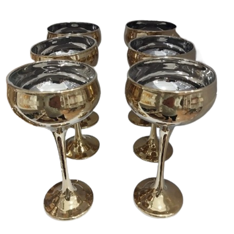 ست بستنی خوری پایه دار 6 تایی آبکاری شده و قابل شستشو، مناسب برای سرو شیک دسر و بستنی.
