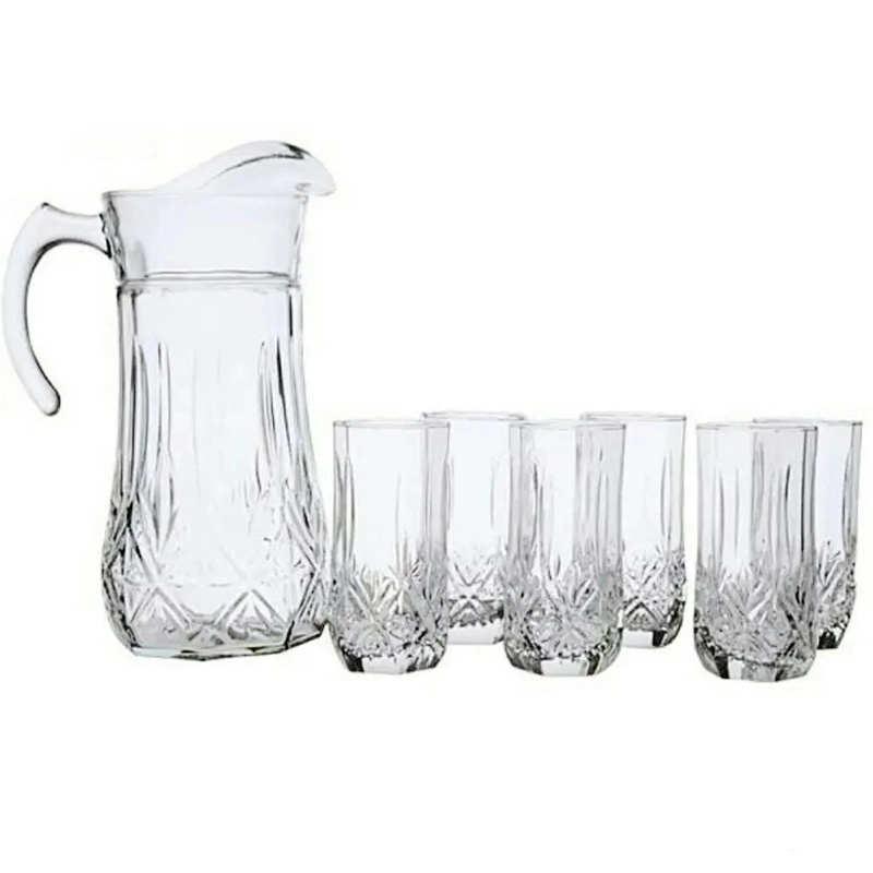 ست پارچ و لیوان 7 پارچه فرانسوی با طراحی زیبا و کاربردی، گزینهای عالی برای پذیرایی و استفاده روزمره در خانه است.