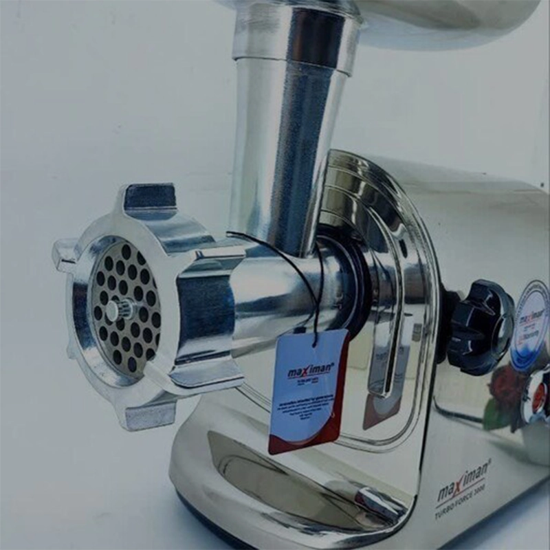 چرخ گوشت ماکسیمان مدل TF-3 با توان ۳۰۰۰ وات و بدنه استیل ضد زنگ، انتخابی مناسب برای استفاده خانگی است. مجهز به عملکرد معکوس، تیغه فولادی، سه صفحه برش و سیستم حفاظت اضافهبار برای عملکردی مطمئن و بادوام.