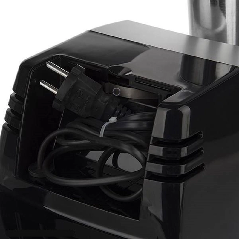 سایر توضیحات : حداکثر توان تحت فشار ۱۰۰۰ وات - توان موتور ۳۰۰ وات - دارای صفحه نمایشگر - اندازه دهانه ورودی گوشت: ۴.۵ سانتی متر - محفظه نگهداری سیم - ناودانی و سینی فلزی به همراه درپوش مخصوص سینی