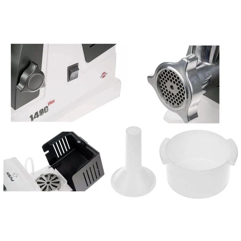 چرخ گوشت پارس خزر مدل MG-1400 Plus با توان 700 وات و تیغه فولادی، مجهز به سینی بزرگ، کلید دور برگردان و سوسیسساز است و عملکردی سریع، ایمن و مناسب مصارف خانگی ارائه میدهد.