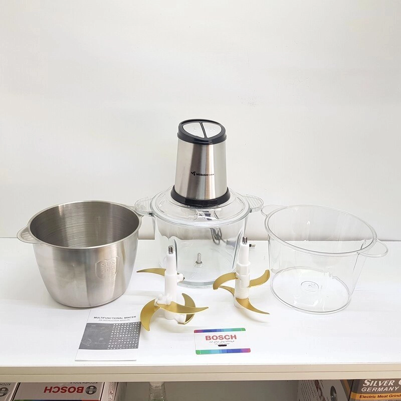 خردکن برقی مباشی مدل ME1133 با توان 1000 وات، ظرفیت ۳.۸ لیتر و دو تیغه استیل، گزینهای عالی برای خرد کردن سریع و آسان انواع مواد غذایی.