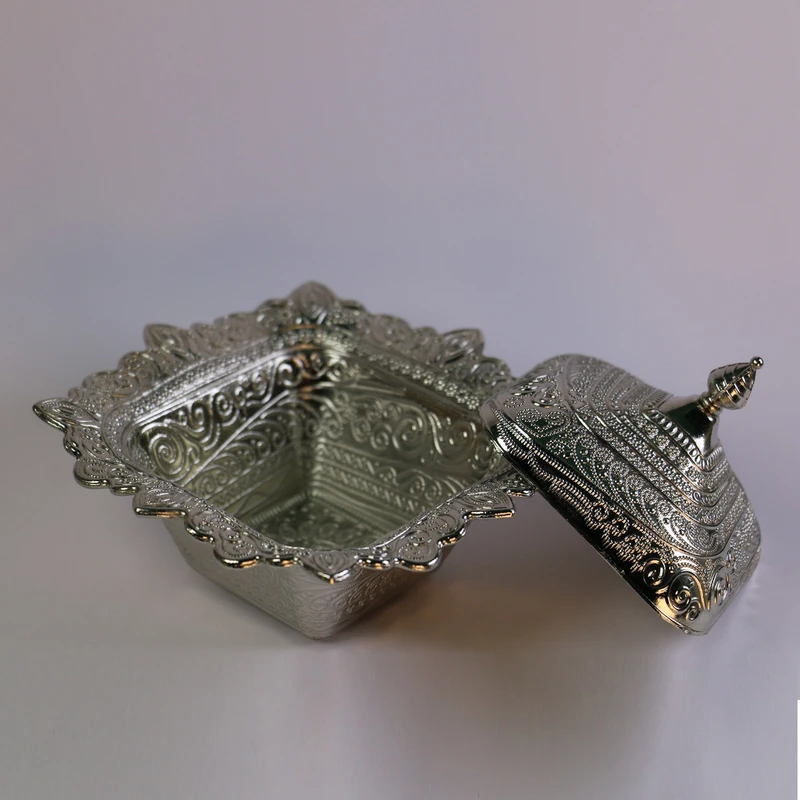 قندان فلزی مربعی با جنس سیلور و ابعاد ۱۳×۱۳ سانتیمتر و ارتفاع ۱۰ سانتیمتر، محصولی ساخته شده در ترکیه است که با طراحی زیبا و مقاوم، انتخابی ایدهآل برای سرو قند در پذیراییهای شیک و کاربردی روزمره محسوب میشود.