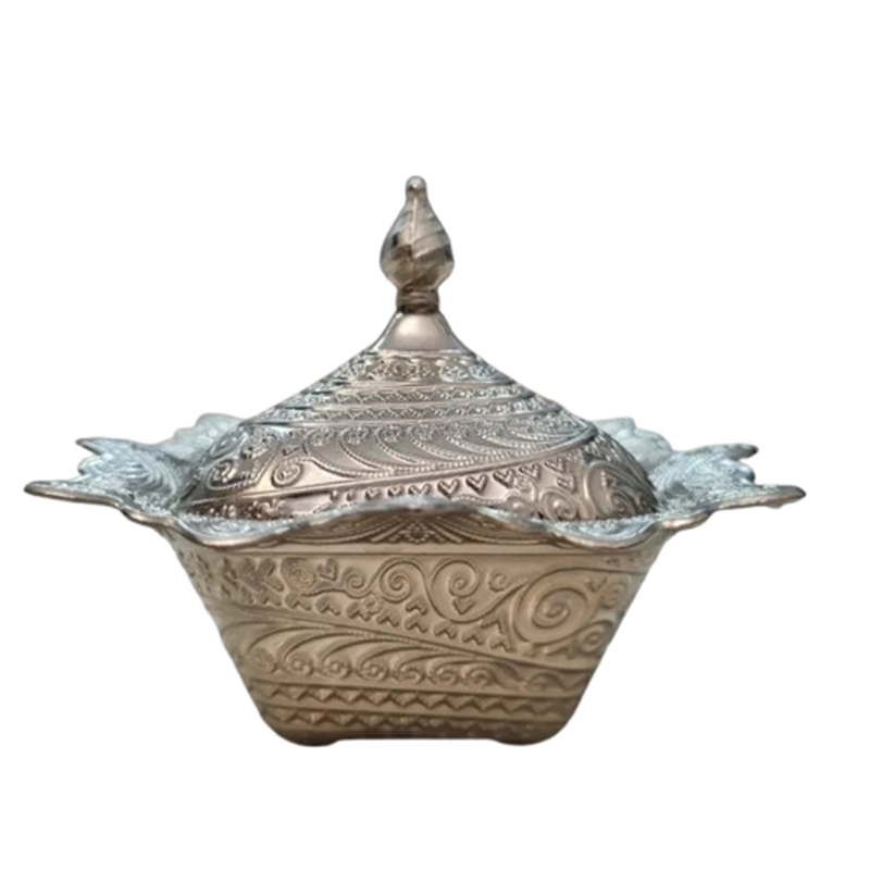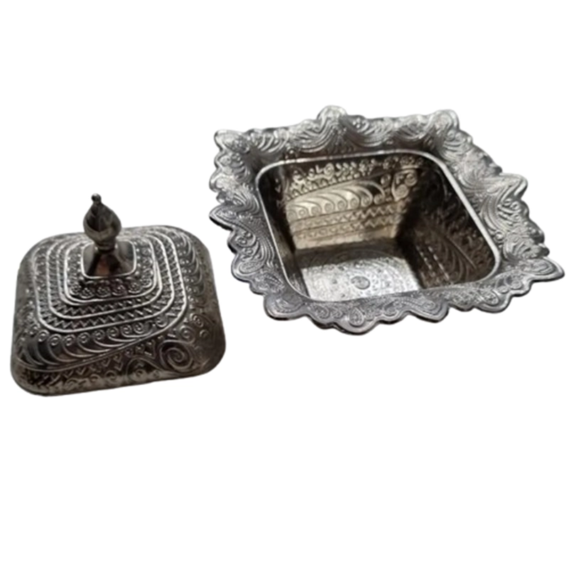 قندان مربعی کوچک ترک با ابعاد ۱۰ در ۱۰ سانتیمتر، ساخته شده از جنس فلزی بادوام و رنگ نقرهای جذاب، گزینهای شیک و کارآمد برای پذیرایی و استفاده روزمره در آشپزخانه است.