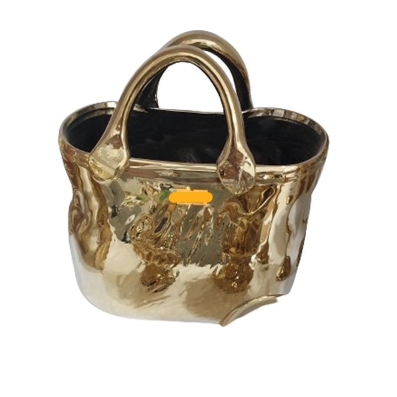 گلدان سرامیکی طلایی با دستهکیفی، آبکاری شده و قابل شستشو، مناسب برای تزئین فضاهای داخلی.