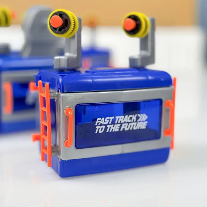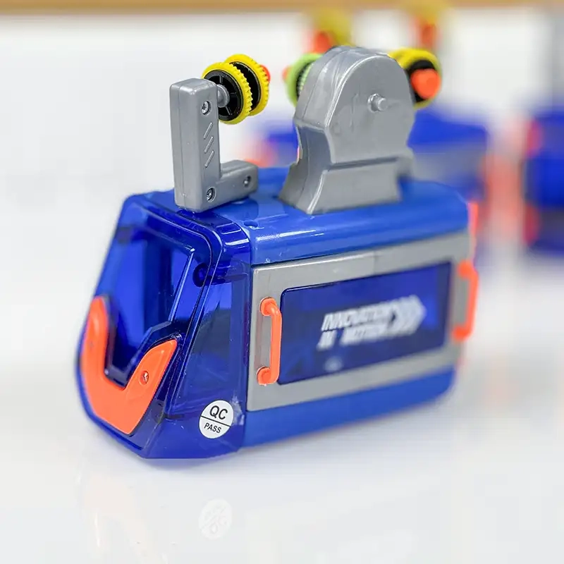 اقلام همراه : 1 عدد لوکوموتیو، 2 عدد واگن، 10 عدد ریل، 2 عدد پایه بنر، 30 عدد پایه ساخت ریل و...