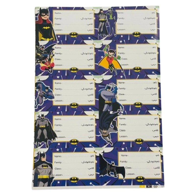 برچسب اسم و کلاس فانتزی با طرح بتمن، ساختهشده از جنس گلاسه، مناسب برای مدرسه و استفاده شخصی.