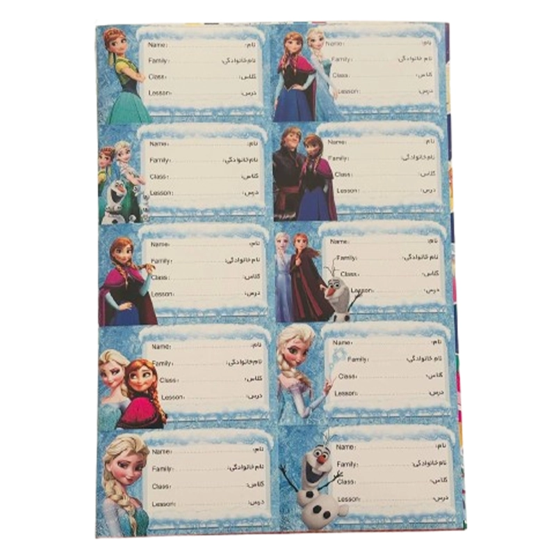 برچسب اسم و کلاس فانتزی طرح فروزن، ساختهشده از جنس گلاسه باکیفیت، مناسب مدرسه و استفاده شخصی.