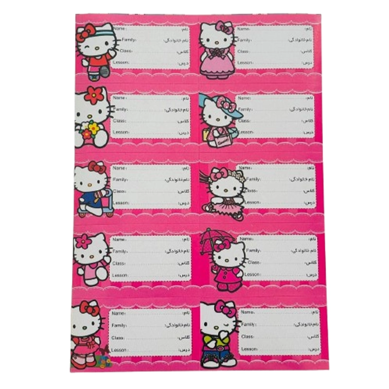 برچسب اسم و کلاس فانتزی طرح کیتی از جنس گلاسه با طراحی زیبا و ماندگار، مناسب دانشآموزان و لوازم تحریر.
