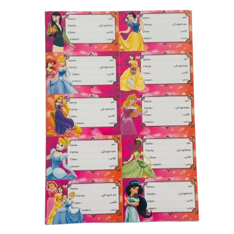 برچسب اسم و کلاس فانتزی طرح پرنسس از جنس گلاسه باکیفیت، مناسب برای دانشآموزان و استفاده روزمره.