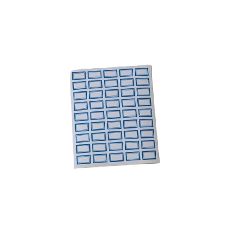 برچسب اسم ساده با دور آبی، ساختهشده از جنس گلاسه با کیفیت، مناسب استفاده شخصی، تحریر و سازماندهی وسایل.