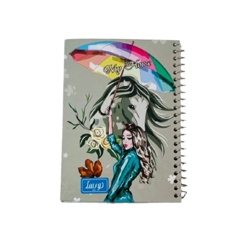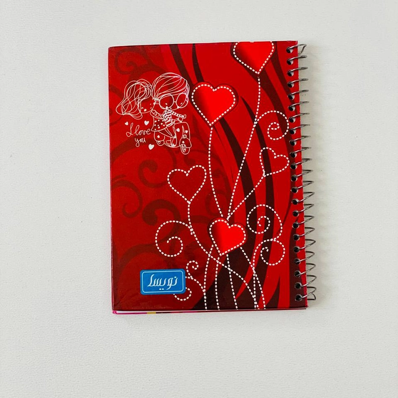 دفترچه یادداشت فانتزی نویسا با جلد سخت و فنر بغل، ابعاد کوچک و طرحهای جذاب، مناسب مدرسه و استفاده روزمره.