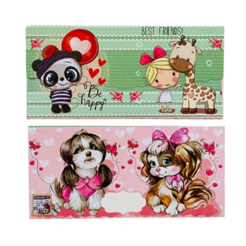 پاکت پول طرح دار فانتزی ساخته شده از مقوا، مناسب هدیه دادن در جشن‌ها و مناسبت‌های خاص با طراحی شیک و جذاب.