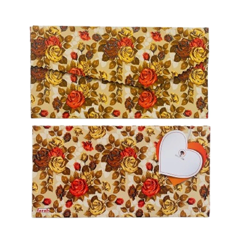 پاکت پول طرح دار اکلیلی از مقوا ساخته شده و با طراحی براق و جذاب، انتخابی شیک و خاص برای هدیه دادن در مناسبتهای ویژه است.