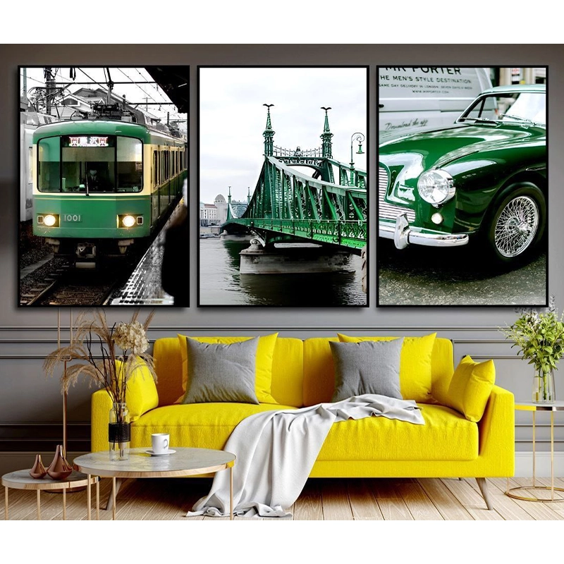 ویژگی خاص: استفاده از رنگهای مشکی و سبز با افکت سهبعدی و خطوط عمودی طلایی در پایین تابلوها