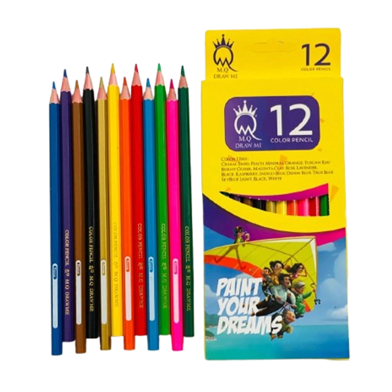مداد مشکی M.Q شش ضلعی با نوک HB و رنگهای متنوع آبی، بنفش و صورتی انتخابی مناسب برای نوشتن روزانه و استفاده دانشآموزی است.