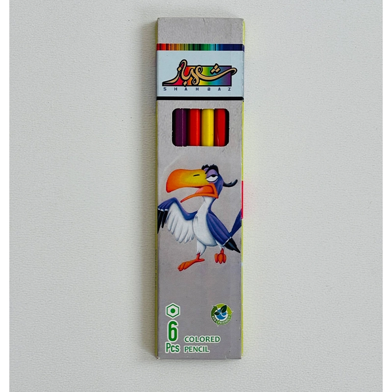 مداد رنگی 6 تایی شهباز با طرحهای متنوع و جذاب، انتخابی عالی برای نقاشی، رنگآمیزی خلاقانه و سرگرمی کودکان، مناسب برای استفاده در مدرسه و خانه، با کیفیت بالا و طراحی دوستداشتنی برای الهامبخشی به هنر کودکان.