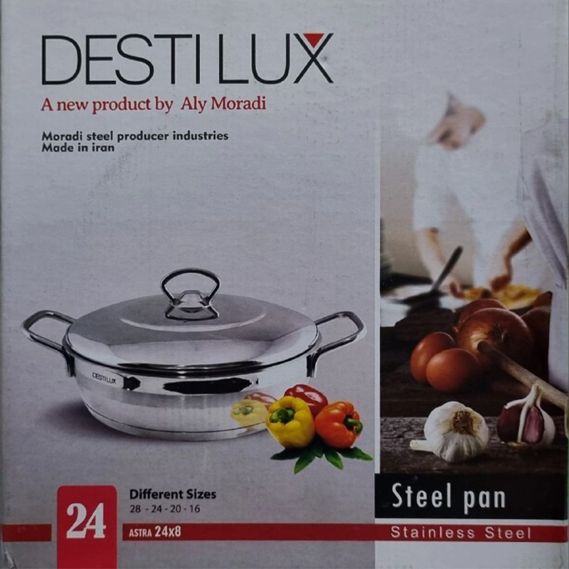 تابه استیل دستی لوکس DESTILUX سایز 24 با بدنه و دسته تمام استیل، مقاوم، شیک و کاربردی برای پخت انواع غذا.
