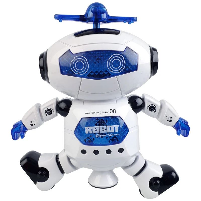 آدم آهنی باتری خور موزیکال و متحرک با ابعاد ۲۲x۱۶x۷ سانتیمتر، یک اسباب بازی موزیکال سرگرمکننده و مناسب برای خردسالان و کودکان است.