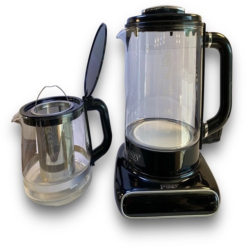 چایساز استیل تاچ فونزی مدل 102 با طراحی مدرن، نمایشگر لمسی، توان 1500 وات و سیستم گرمنگهدار، انتخابی عالی برای تهیه چای روزانه است. کتری 1.5 لیتری و قوری شیشهای آن استفاده را راحت و سریع میکند و برای خانه و محیط کار کاملاً مناسب است.