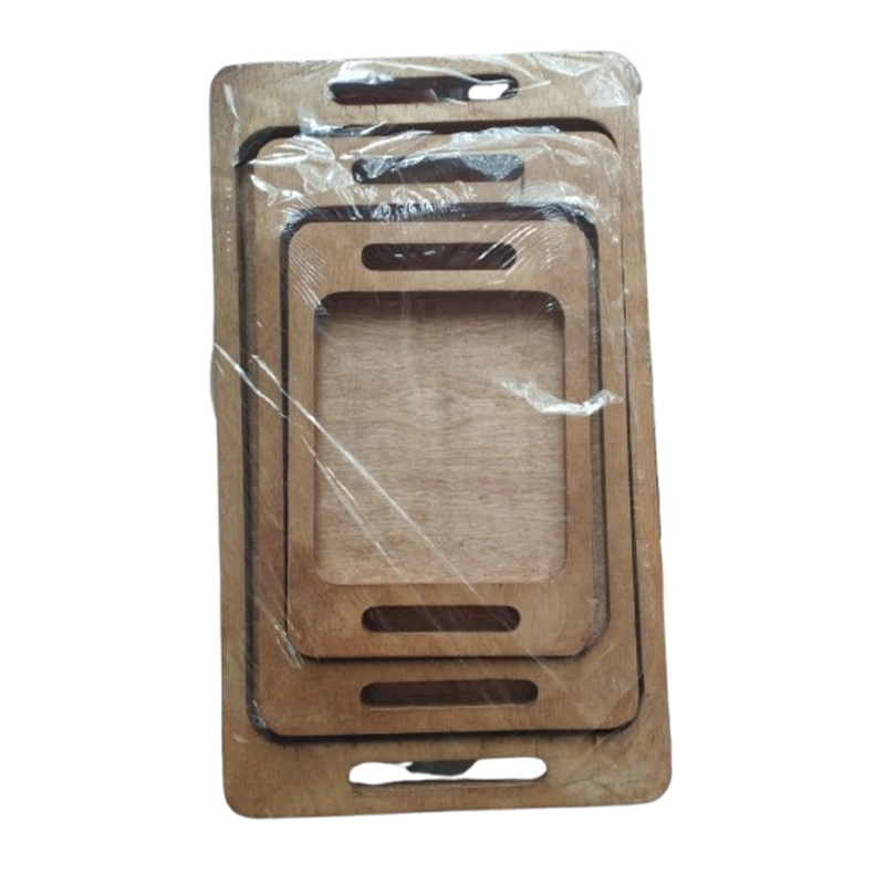 ست سینی چوبی بامبو مستطیل شامل ۳ سایز مختلف است که برای سرو غذا، نوشیدنی و دکوراسیون آشپزخانه کاربردی و زیباست. این سینیها سبک، مقاوم و قابل شستشو هستند.
