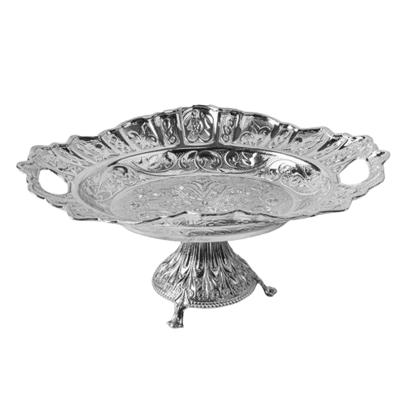 خرما خوری پایهدار سنا از جنس فلز نقرهای با طراحی شیک و ساخت ترکیه، انتخابی عالی برای سرو خرما و پذیرایی در مهمانیها و دورهمیها، ترکیبی از زیبایی و کیفیت در آشپزخانه شما.