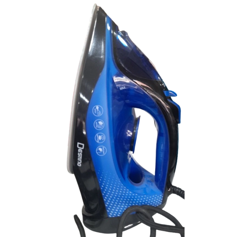 اتو بخار دسینی DS-019 سبک و قدرتمند با توان 2500 وات، کفی سرامیک، سیستم ضد رسوب و خاموشی خودکار، همراه با کنترل میزان بخار و اسپری آب برای اتوکشی آسان.