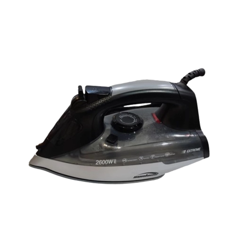 اتو بخار سانلند SL-235 سبک و کاربردی با توان 2600 وات، کفه سرامیک، امکان تنظیم دما و استفاده عمودی، همراه با لیوان و دفترچه راهنما برای اتوکشی آسان و راحت.